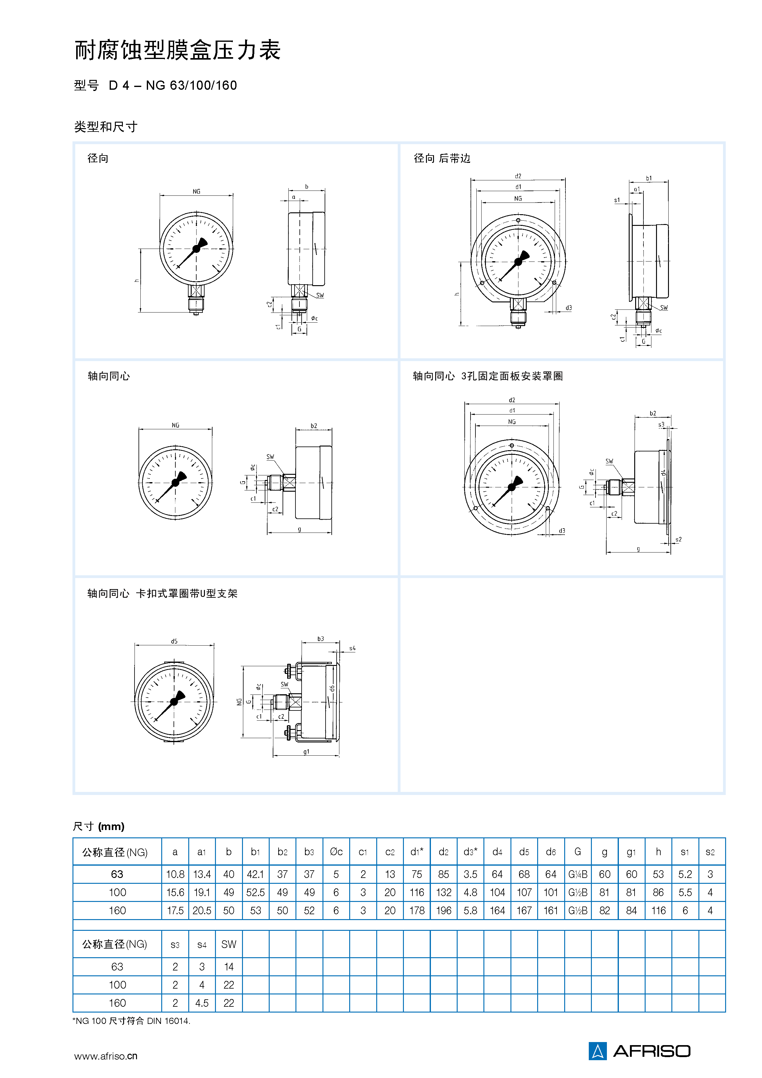 NG 100-160 G1/2B – SW22 (EN 837-3/7.3)