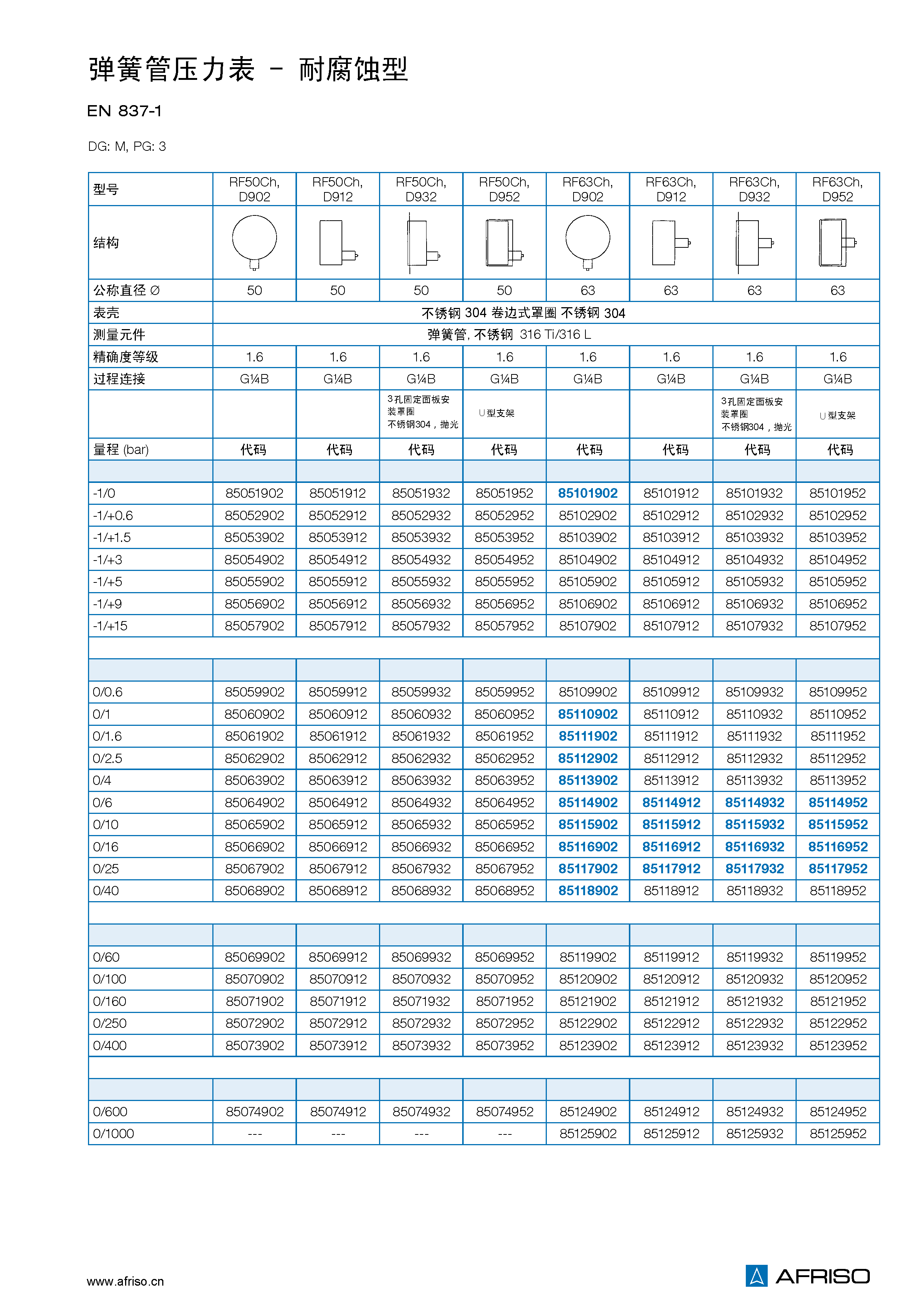 適用于測量低粘度、非結晶的氣體或液體介質的壓力。用于腐蝕性場所。 在測量氣體或蒸氣時,該儀表的使用必須符合EN837-2標準所規定的安全使用規范。 |