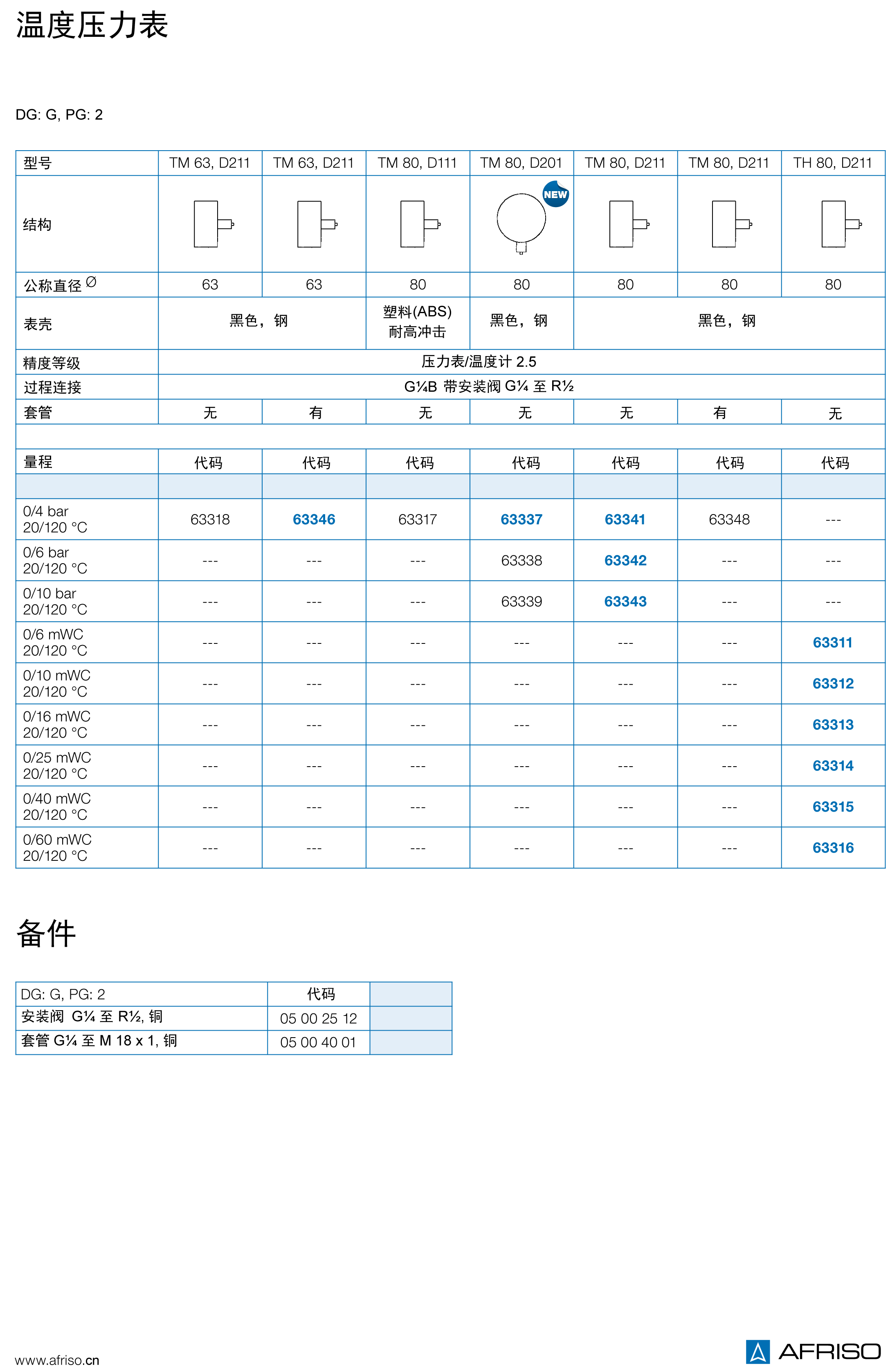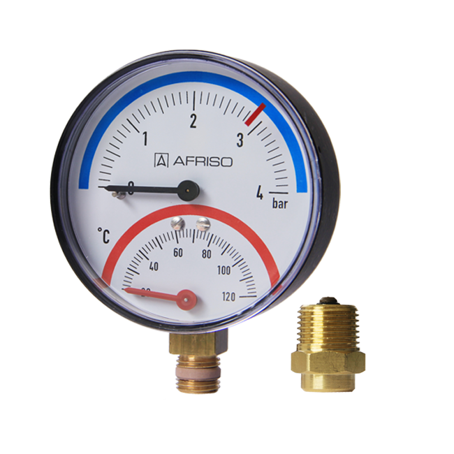 壓力表/量程: 0/0.4 MPa至0/1 MPa和0/6 mWC至0/60 mWC 溫度計:20/120°C |