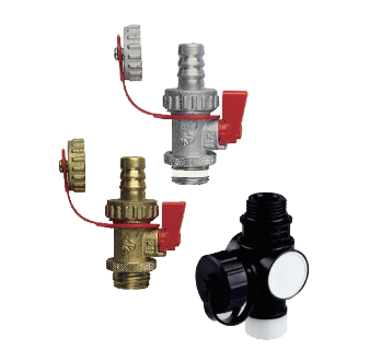 給系統注液和排水。內置球閥由黃銅制成。 一側帶有PTFE 密封圈的G? 外螺紋,另一側?“ 軟管接頭, 帶G? 螺母和 帶蓋帶子的堵頭。其他配置,純黃銅(飲用水)或鍍鎳黃銅(供熱回路水)。 |