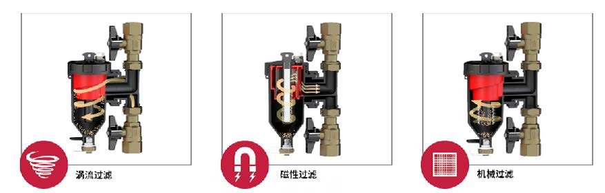 供熱系統(tǒng)的金屬部件容易腐蝕,使雜質(zhì)混入水中,一旦這些鐵屑觸及熱發(fā)生器,便很容易卡進(jìn)交換機(jī),或附著在循環(huán)器的磁體上,引起部件堵塞。ADS 160 是一款整合了三道過(guò)濾工序的磁性過(guò)濾器,采用專利設(shè)計(jì),可維持系統(tǒng)健康運(yùn)行,性能持續(xù)有效,尺寸輕巧,易于安裝。 |