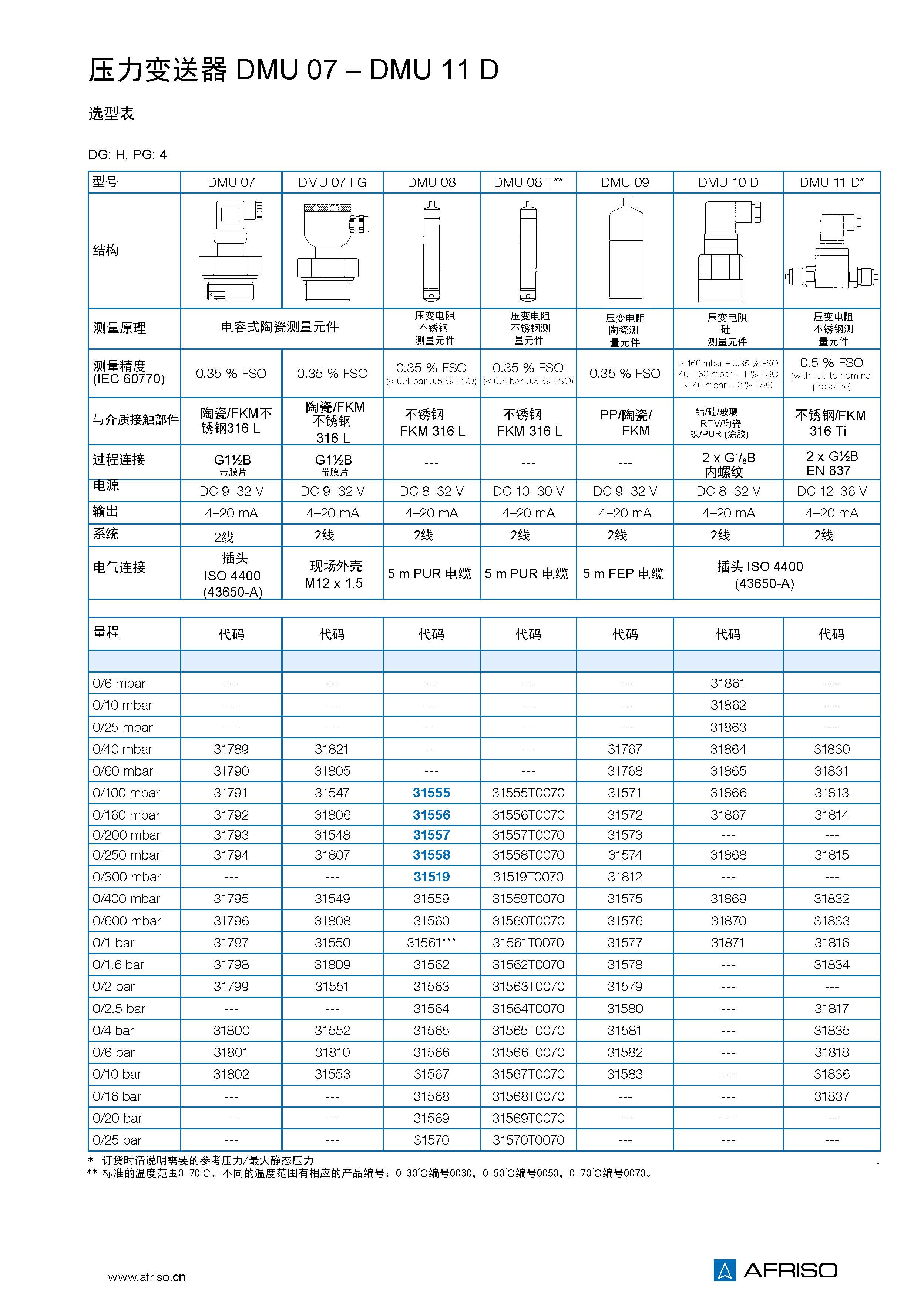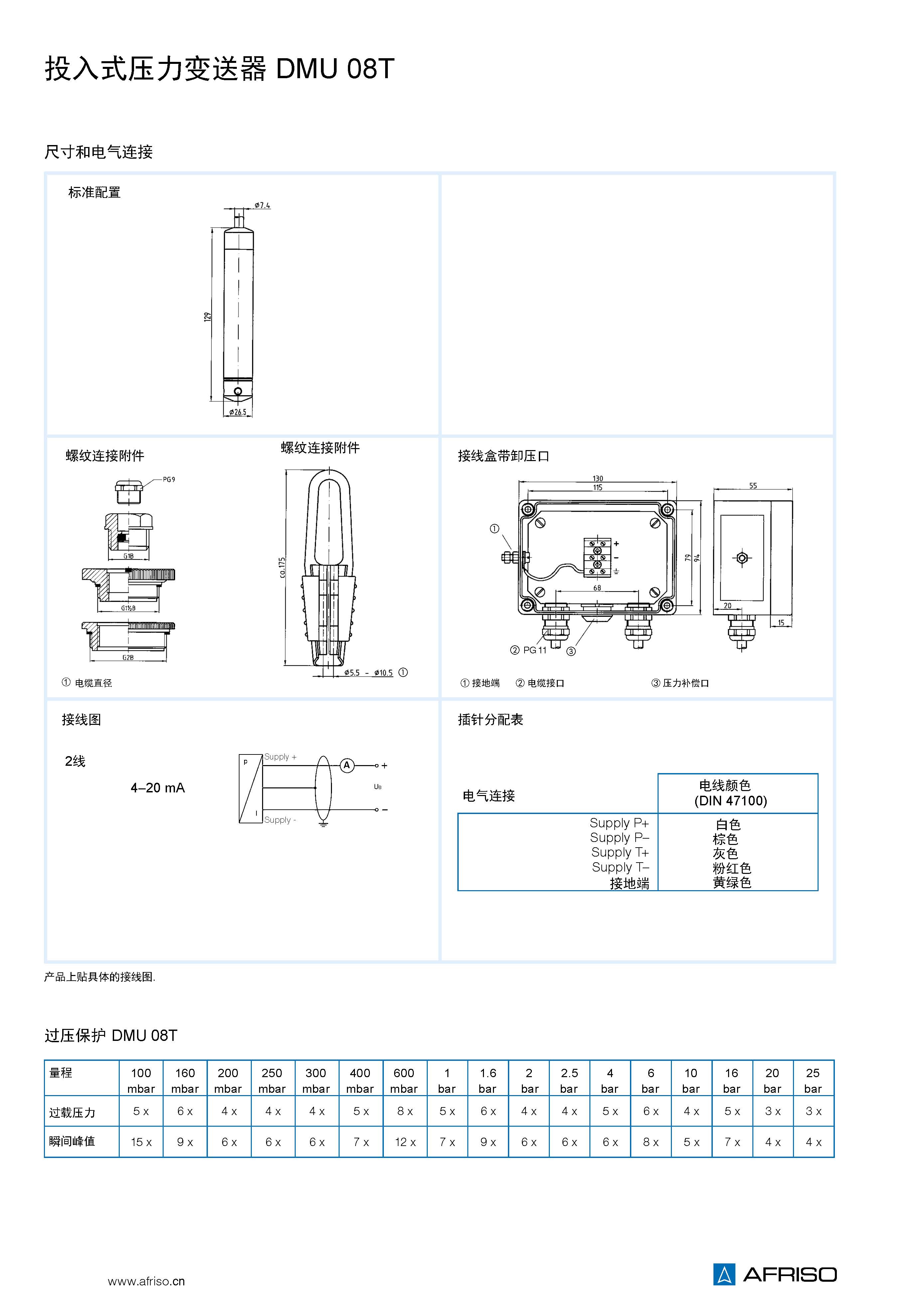 壓力變送器將物理壓力和溫度轉換成兩個獨立的電信號。HydroFox® DMU 08采用壓電硅測量單元,溫度采用Pt100傳感器。 |
