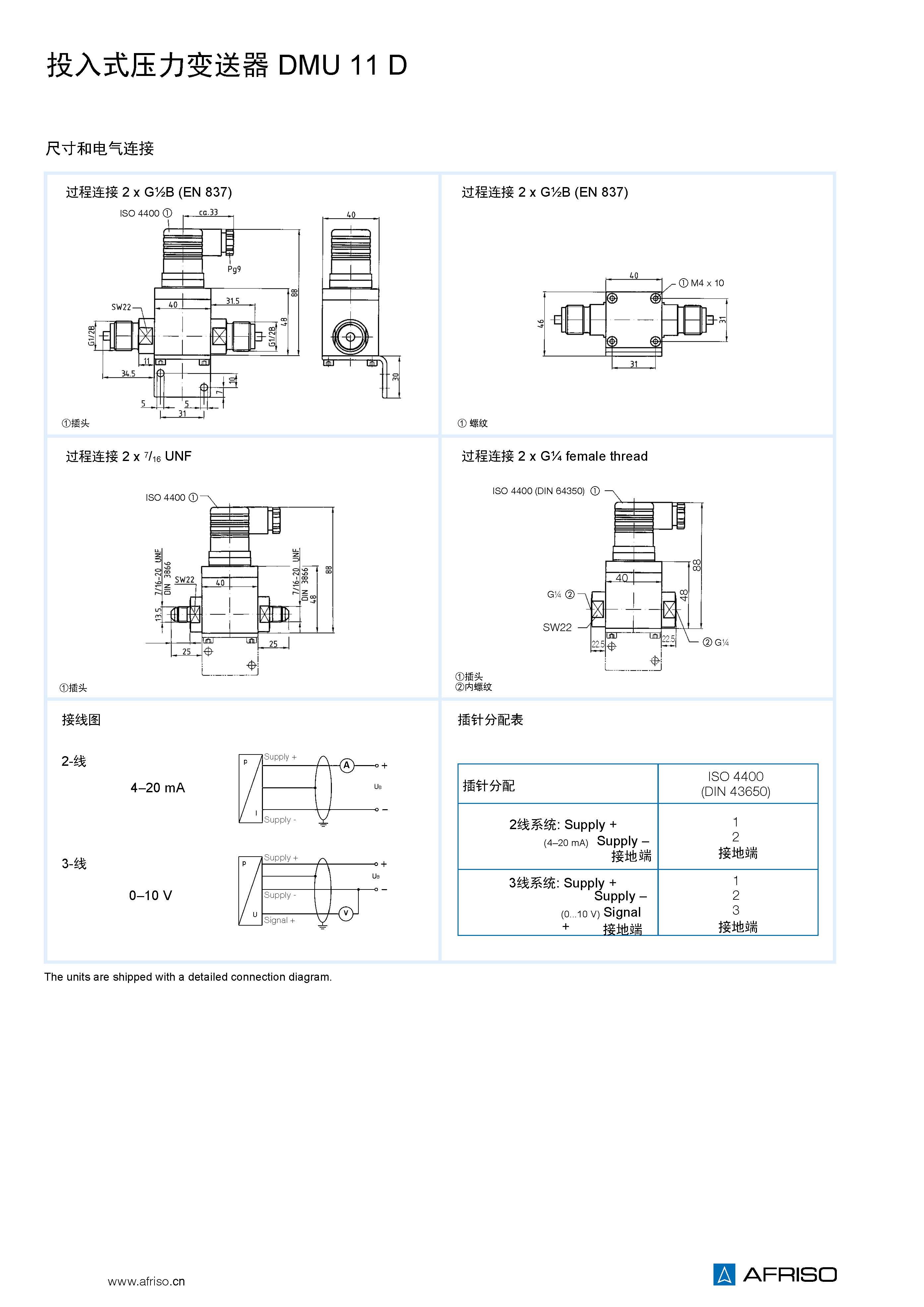 插頭和接線盒符合標準ISO 4400 (DIN 43650-A)IP65 |