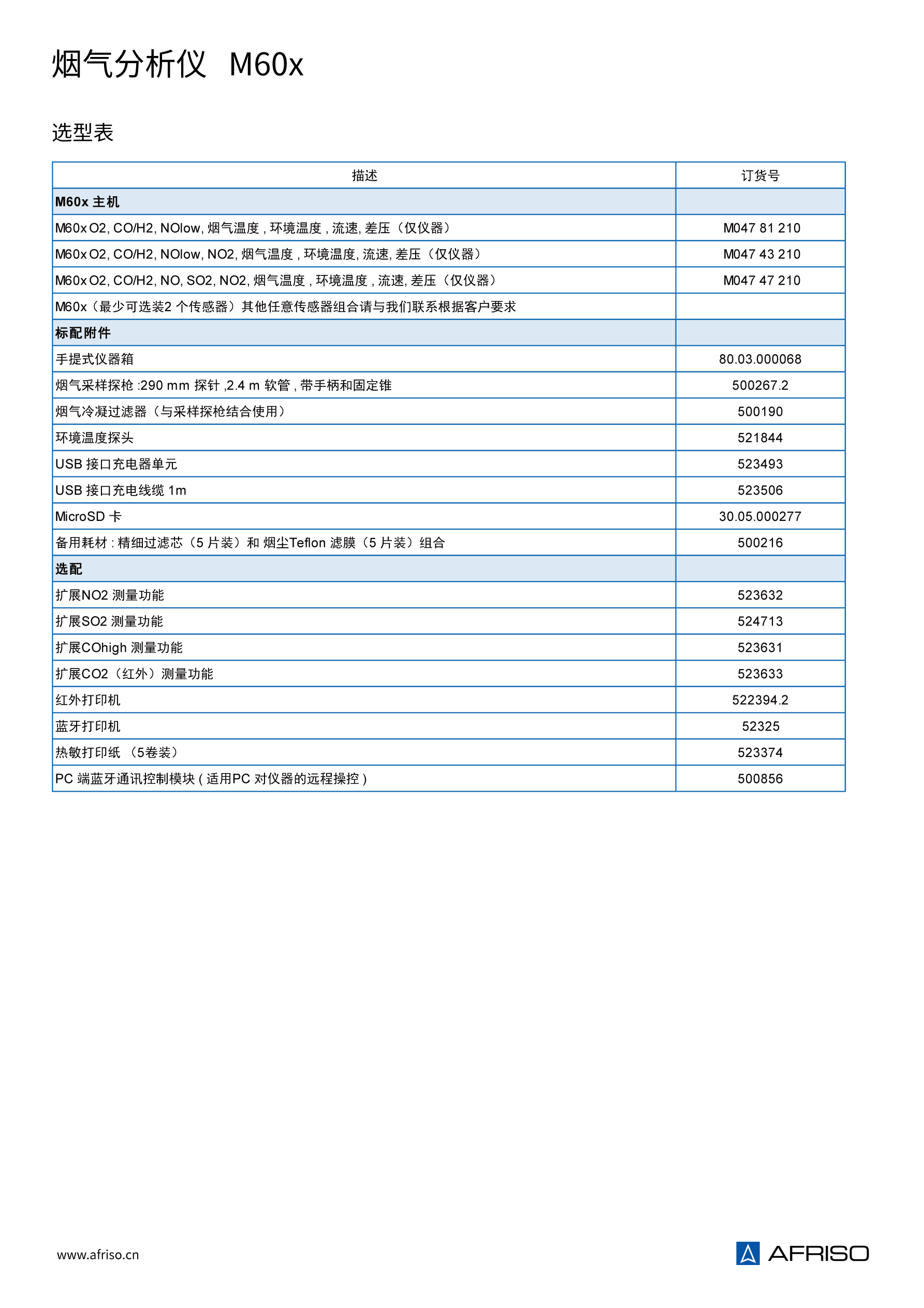 ? M60全新升級而來:新的操作按鍵設計和布局,實體按鍵,功能明確。傳感器精度和使用壽命更優; ? 標配長壽命電化學傳感器,O2傳感器使用壽命≥5年; ? 標配CO/H2高量程傳感器,實測量程達10000ppm,解決調試中因為超載造成的CO反復中毒問題; ? 內置雙抽氣泵,帶新鮮空氣反吹功能。確保CO傳感器在煙氣濃度超載的狀態下不會損壞 ; ? 標配測量數據自動記錄功能,記錄時間1~999s可調; ? 標配MicroSD卡4GB,最大可選32GB,用于實時的測量數據存儲和軟件升級; ? 儀器開機具備傳感器自動檢測及校零功能,傳感器響應時間極短,<20s,精度高,NOlow低氮測量,誤差≤2ppm; ? 可通過手機/pad/電腦遠程監控測量過程:顯示測量值的曲線圖和柱狀圖; ? 內置二維碼功能,每組測量值都能生成一個二維碼,通過掃描二維碼后可將數據直接保存于手機; ? 鋰電池續航時間長達12h,測量過程亦可同時充電; ? 自動計算參數:CO2 , NOx,CO(未稀釋) , 溫差 , 燃燒效率 , 過量空氣系數,煙氣損失值,露點; ? 品質可靠,100% 德國制造; |