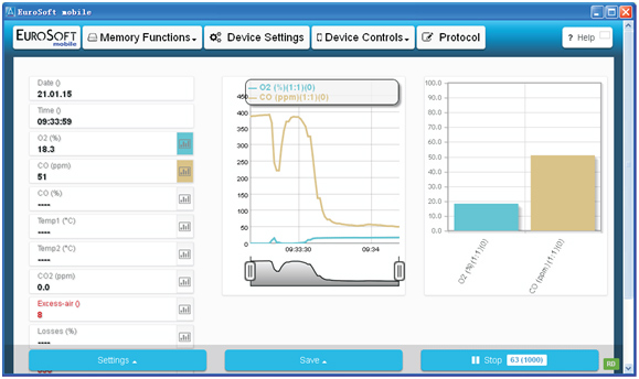 EuroSoft mobile 軟件適用于煙氣分析儀器、電子壓力計 S4600 ST、風(fēng)速儀 BlueAir ST 與 PC 端或智能手機(jī)之間的連接通訊。通過免費的 Eurosoft Mobile 軟件 , 用戶可以方便的使用電腦、Pad 或手機(jī)遠(yuǎn)程操作儀器,查看、編輯測量數(shù)據(jù)等。